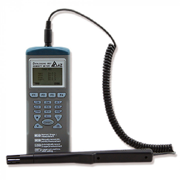 Комбинированный ручной логгер температуры и влажности модели 9651 с внешним полимерным датчиком ёмкостного сопротивления определяет влажность и температуру и показывает их на экране одновременно. Кроме того показываются: